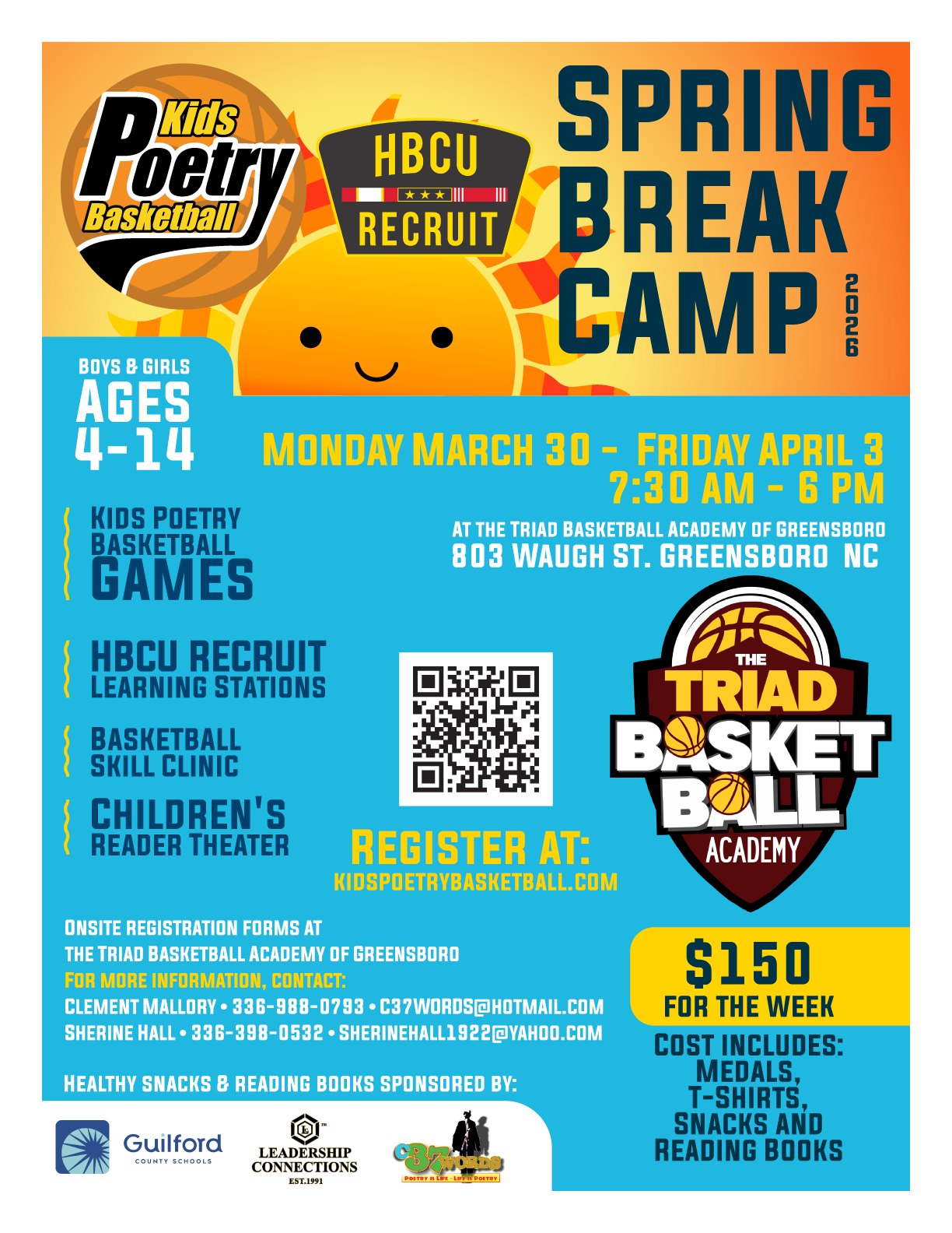 Kids Poetry Basketball and HBCU Recruit present a 5 day spring break camp for boys and girls ages 4-14. There will be Kids Poetry Basketball Games, HBCU RECRUIT Learning Stations, […]